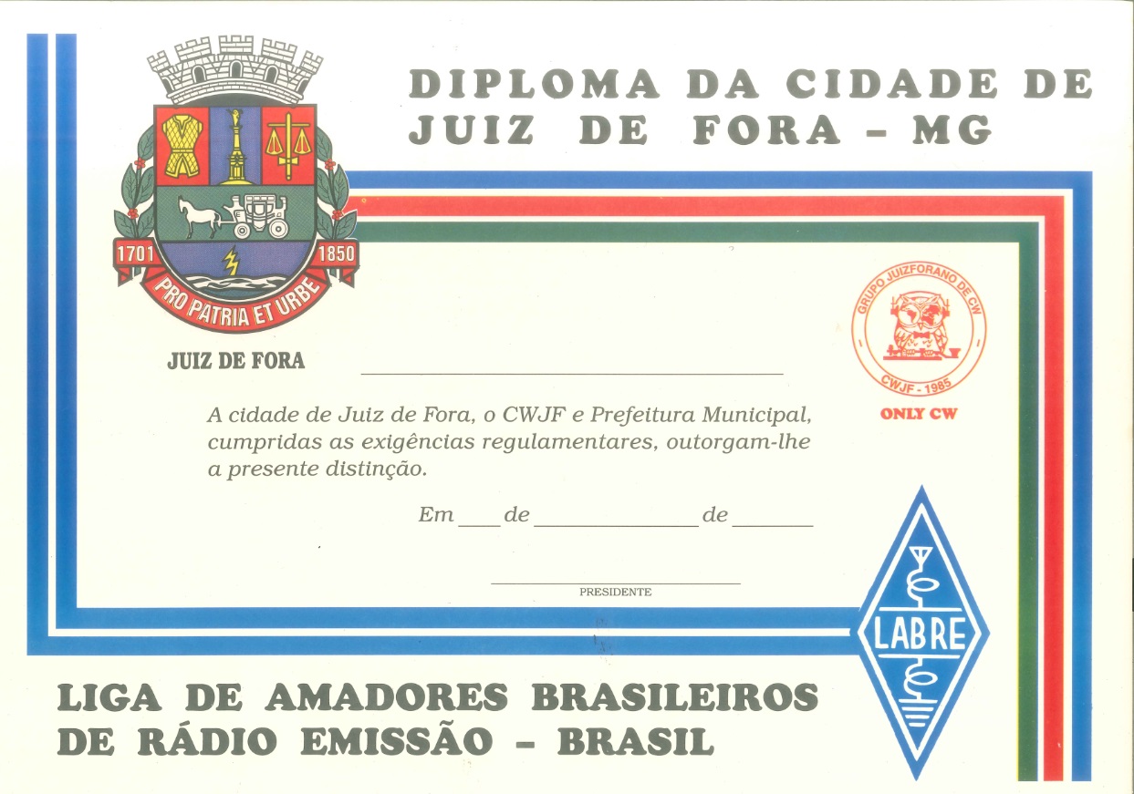 O diploma será outorgado a radioamadores que comprovarem contatos com 10 Membros diferentes do CWJF Group. São válidos os contatos em todas as faixas, exclusivamente na modalidade de CW.